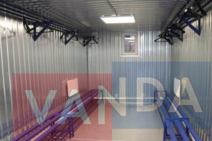 При строительстве металлической бытовки (блок контейнера), сам каркас делается из металла. Верхняя и нижняя обвязка из швеллера, размерами 100х50х3 мм., 120х50х3 мм., 140х50х3 мм. Угловые стойки – сложно гнутый угол 90х90х3 мм. Кровля – листовой металл, толщиной 0,9-1 мм. Вспомогательный каркас делается из бруска 40х75 мм., 40х100 мм. или 40х150 мм. Снаружи обшивается оцинкованным профлистом или профлистом с полимерным покрытием. Внутренняя отделка – ДВП-Оргалит, вагонка, плита OSB, МДФ, ЛДСП, панели ПВХ и т.д. Утепляется мин. ватой или базальтовой ватой весь периметр. Прокладывается пароизоляция. Черновые полы доска 20 мм., Чистовые полы – ДСП строительное 16 мм. Окна и двери деревянные.