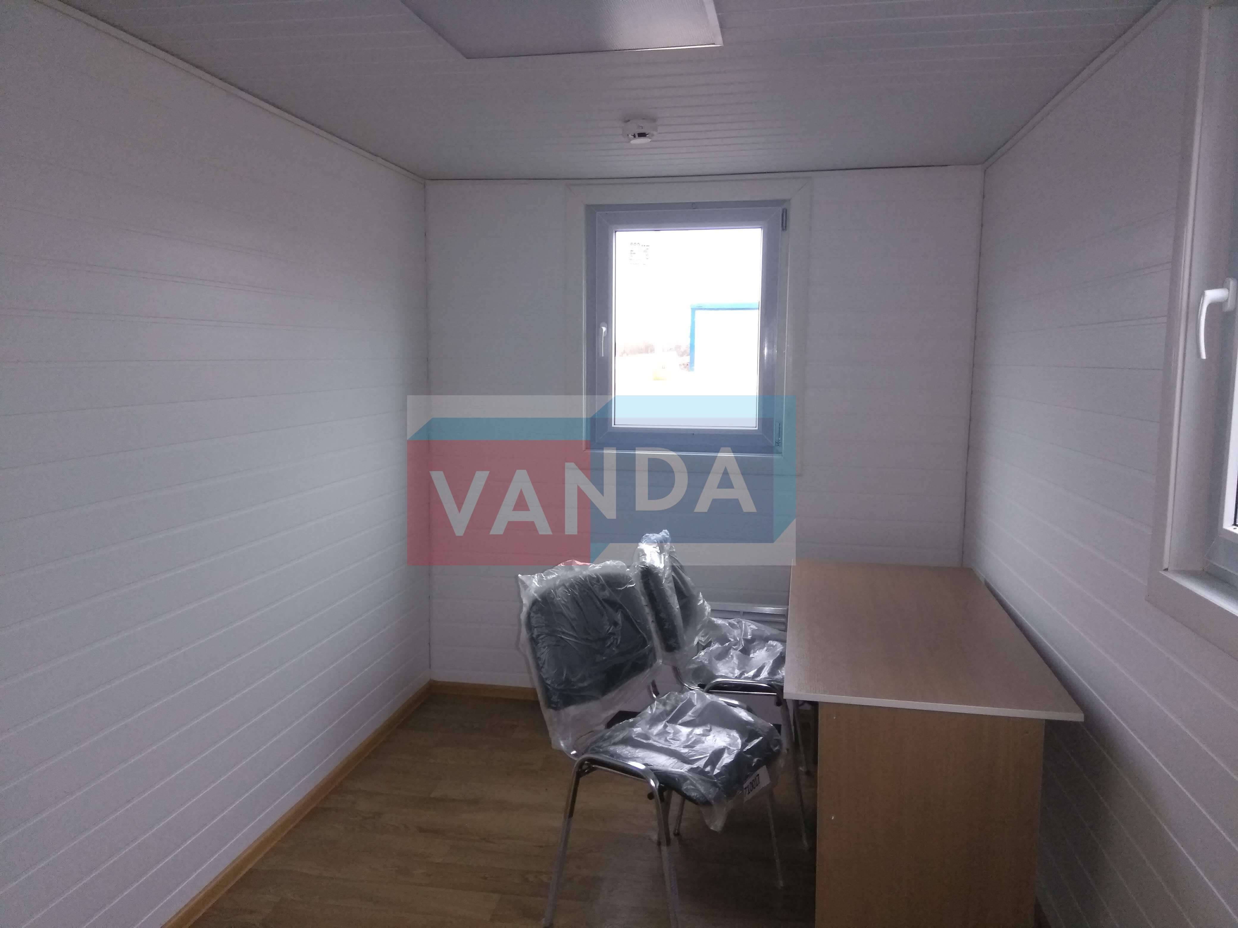 Блок контейнер металлический с тамбуром 5,85х2,4 изготавливается из несущего каркаса (верхняя и нижняя обвязка): швеллер 100х50х3 мм., угловые стойки: сложно - гнутый угол 90х90х3 мм., крыша блок-контейнера: металл сварной 0,9-1 мм., качественная наружная отделка: оцинкованный профлист, внутренняя отделка стен: Вагонка ПВХ, внутренняя отделка потолка: Вагонка ПВХ, вспомогательный деревянный каркас (стены): брусок 40х75 мм., лаги пола: обрезная доска 40х100 мм., лаги потолка: обрезная доска 40х100 мм., выполнено утепление: Минеральная вата «ISOVER» – 50 мм. и пароизоляция: плёнка техническая, черновой пол состоит из: обрезная доска 20 мм. (2 сорт), чистовой пол покрыт: ДСП строительное 16 мм., отделка пола выполнена из качественных материалов. Контейнер комплектуется окнами: деревянное, двойное остекление 800х1000, входной дверью: ДГ 21-8 обшита снаружи оцинкованным листом, врезной замок и внутренними дверями: ДГ 21-8 (при наличии перегородки). Если в БК присутствуют перегородки, то для них используется: брусок 40х50 мм.