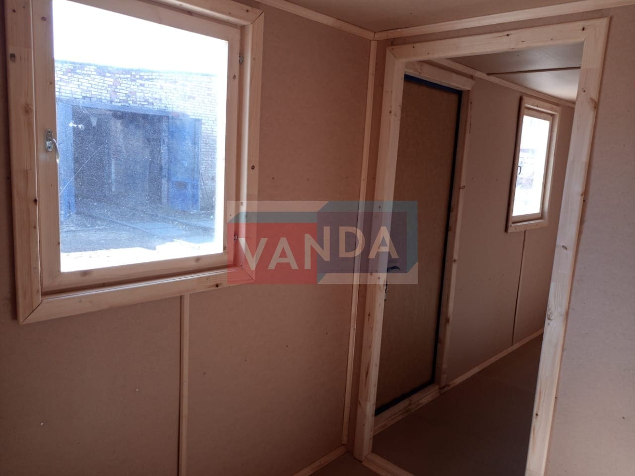 Блок контейнер металлический распашонка 5,85х2,4 изготавливается из несущего каркаса (верхняя и нижняя обвязка): швеллер 100х50х3 мм., угловые стойки: сложно - гнутый угол 90х90х3 мм., крыша блок-контейнера: металл сварной 0,9-1 мм., качественная наружная отделка: оцинкованный профлист, внутренняя отделка стен: Оргалит-ДВП, внутренняя отделка потолка: Оргалит-ДВП, вспомогательный деревянный каркас (стены): брусок 40х75 мм., лаги пола: обрезная доска 40х100 мм., лаги потолка: обрезная доска 40х100 мм., выполнено утепление: Минеральная вата «ISOVER» – 50 мм. и пароизоляция: плёнка техническая, черновой пол состоит из: обрезная доска 20 мм. (2 сорт), чистовой пол покрыт: ДСП строительное 16 мм., отделка пола выполнена из качественных материалов. Контейнер комплектуется окнами: деревянное, двойное остекление 800х1000, входной дверью: ДГ 21-8 обшита снаружи оцинкованным листом, врезной замок и внутренними дверями: ДГ 21-8 (при наличии перегородки). Если в БК присутствуют перегородки, то для них используется: брусок 40х50 мм.